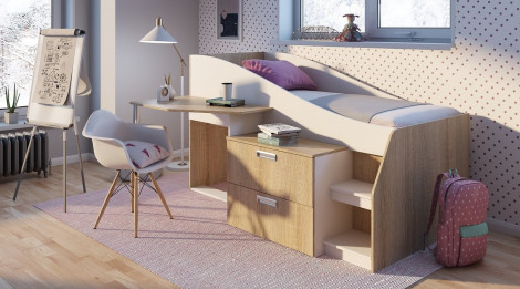 - Письменный стол и лестница не позволят Вашему малышу упасть из кроватки.