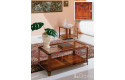 Прямоугольный журнальный стол в классическом испанском стиле, выполнен из МДФ, стекло с фацетом. Текстура фасада - срез корня орехового дерева, многослойная лакировка с мягким глянцем, шелкография, темнение по периметру для придания эффекта старения.