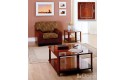 Квадртаный журнальный стол в классическом испанском стиле, выполнен из МДФ, стекло с фацетом. Текстура фасада - срез орехового дерева, многослойная лакировка с мягким глянцем, шелкография, темнение по периметру для придания эффекта старения.