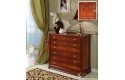 Комод классического испанского стиля, выполнен из материалов - плиты МДФ, ДСП. Многослойная лакировка с умеренным глянцем, шелкография. Текстура фасада повторяет срез корня орехового дерева. Оптимальный габарит и наличие шести широких выдвижных ящиков придают комоду высокую функциональность и возможность размещения в любой комнате.