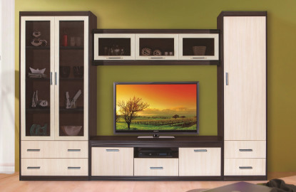 Модульная гостиная Виктория длина 3,7 метра, цвет филадельфия. Стенка Виктория Композиция №01