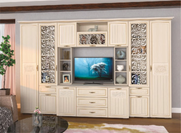 Модульная гостиная Виктория длина 3,2 метра, цвет орех. Стенка Виктория Композиция №08