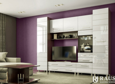 Модульная гостиная Инесса New длина 3,6 метра, цвет белый глянец. Комплектация 03
