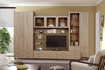 Модульная гостиная Инесса длина 3,4 метра, цвет ясень шимо светлый. Комплектация 01
