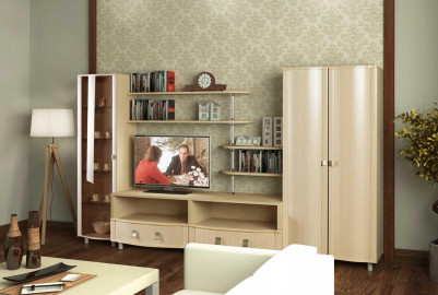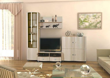 Модульная гостиная Камелия длина 2,7 метра, цвет дуб белёный. Комплектация 02