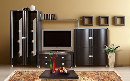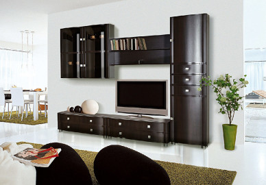 Модульная гостиная Камелия длина 2,7 метра, цвет дуб венге. Комплектация 09