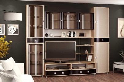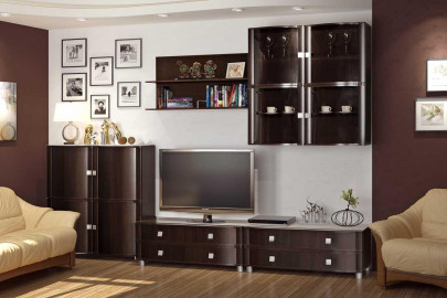 Модульная гостиная Камелия длина 2,5 метра, цвет дуб венге. Комплектация 17