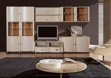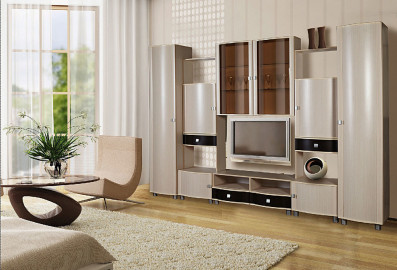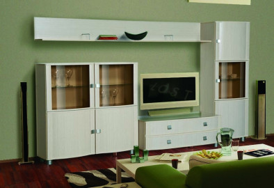 Модульная гостиная Камелия длина 2,7 метра, цвет дуб белёный. Комплектация 21