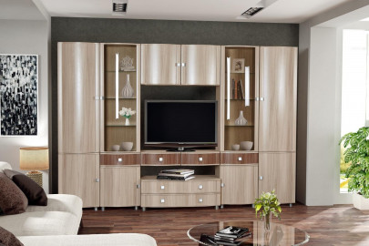 Модульная гостиная Камелия длина 3,2 метра, цвет шимо светлый / тёмный. Комплектация 40