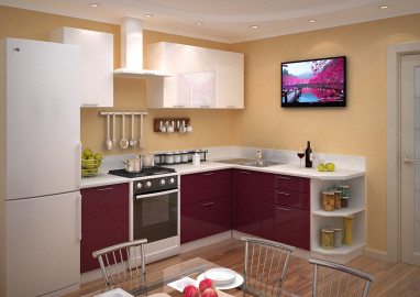 Модульная кухня Валерия-М /длина 2,6 метра, цвет белый металлик / гранат металлик. Комплектация 14