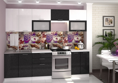 17 625 Руб.Модульная кухня Валерия-М | Комплектация 19 | длина 2,6 метра, цвет белый металлик / черный металлик