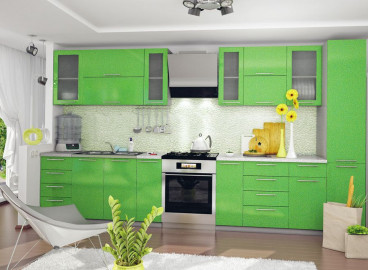 Модульная кухня София длина 3,1 метра, цвет зелёный металлик