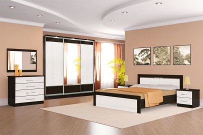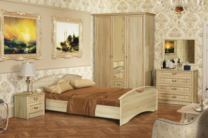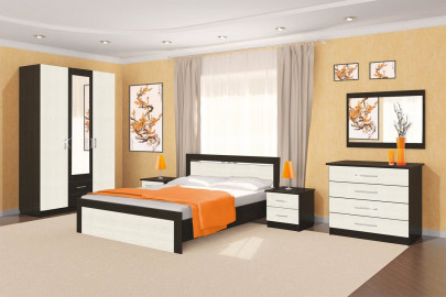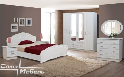 Шкаф 4-х створчатый, кровать №2 1,4 (с основанием), тумбочка 2 шт., комод, зеркало