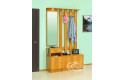 Прихожая Машенька состоит из открытой вешалки с низкой тумбой для обуви и комплекта из зеркала и еще одной тумбы. Вешалка оборудована четырьмя удобными крючками для одежды, зонтов или сумок. Вертикальное зеркало, на деревянной основе и имеющее встроенную подсветку, визуально расширяет пространство комнаты. Удобная тумба с выдвижным ящиком, с отделением с распашными дверьми предназначена для косметики, ключей, перчаток.