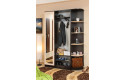Центральная и торцевая секции составляют прихожую Анечка. Центральная секция состоит из одностворчатого шкафа с вкладными полками для разных вещей с зеркальной дверкой, из вешалки для одежды, из отделений для шляп, шапок, кепок и для обуви. Торцевая секция представляет собой открытый угловой стеллаж.